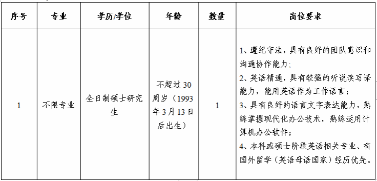 因工作需要,现招聘国际联合研究生院办公室工作人员1名,招聘条件及报名方式如下: