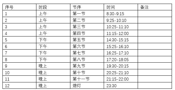根据学校疫情防控要求,实施教学楼错峰上课方式:7号教学楼第3、4节上课时间调整为10:45-12:20,其他教学楼上课时间不变。