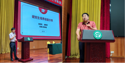 在“导师代表经验分享”环节,机械工程学院赵愈亮老师和法社学院陈成文老师结合自身指导研究生的实践,分享了育人心得与方法。他们丰富的指导经验为其他导师提供了宝贵借鉴,现场互动热烈。