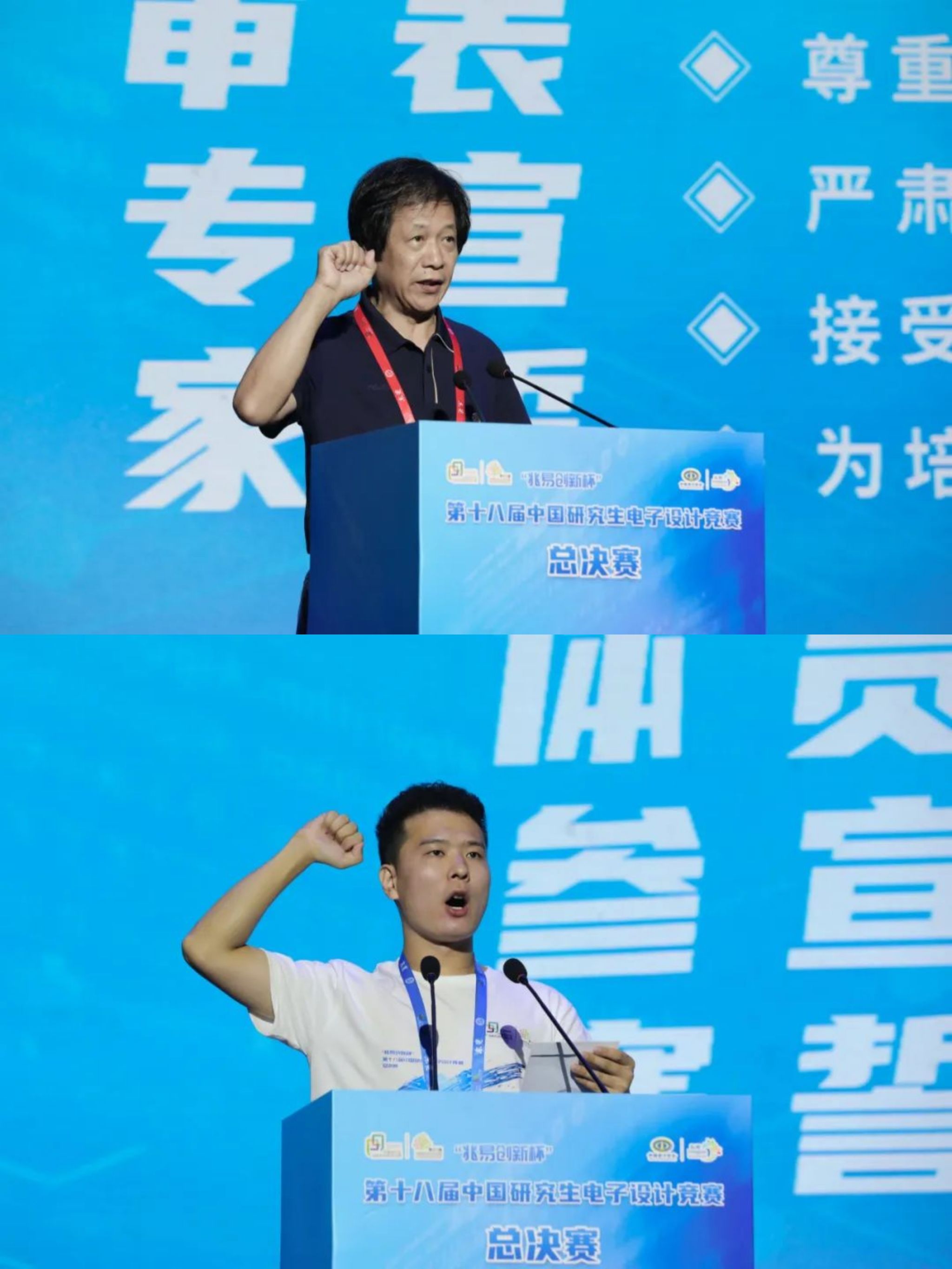 开幕式上,竞赛组委会秘书长、清华大学集成电路学院院长吴华强介绍了本届赛事组织情况,华南理工大学殷瑞祥教授、sunbet申搏“驾享无忧”队成员陈林豪分别代表所有评委、所有参赛选手宣誓。