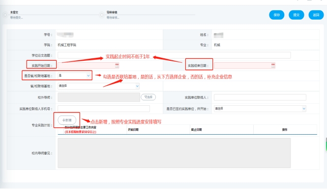(一)专业实践结束后一周内,研究生应在研究生教育管理系统完成专业实践考核填写后提交。