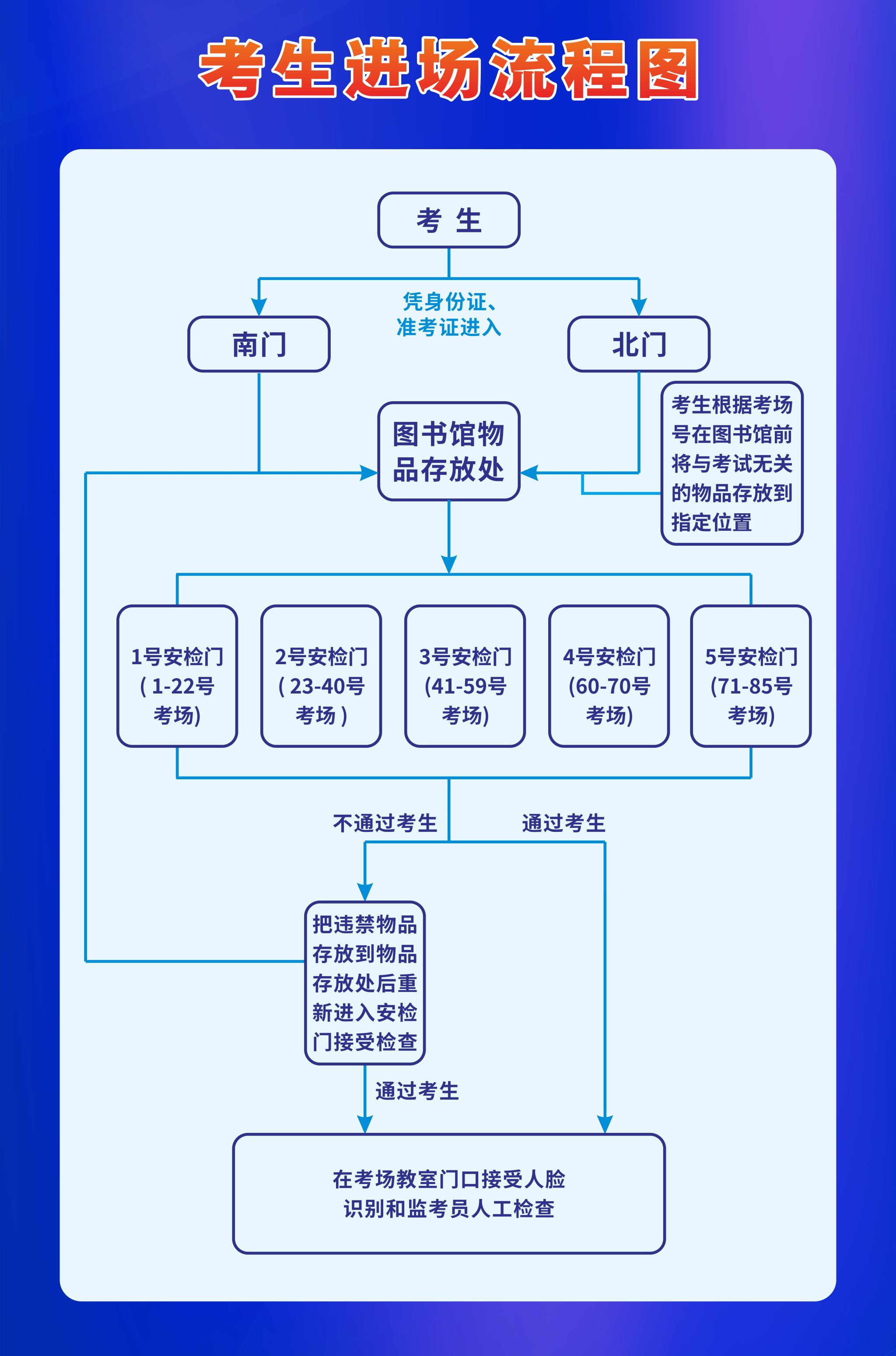 3. 12月21日和22日上午7:30-8:00为进校高峰期,请考生提前计划进校时间,错峰进校,预留充足时间步行至考场及入场安检查验。