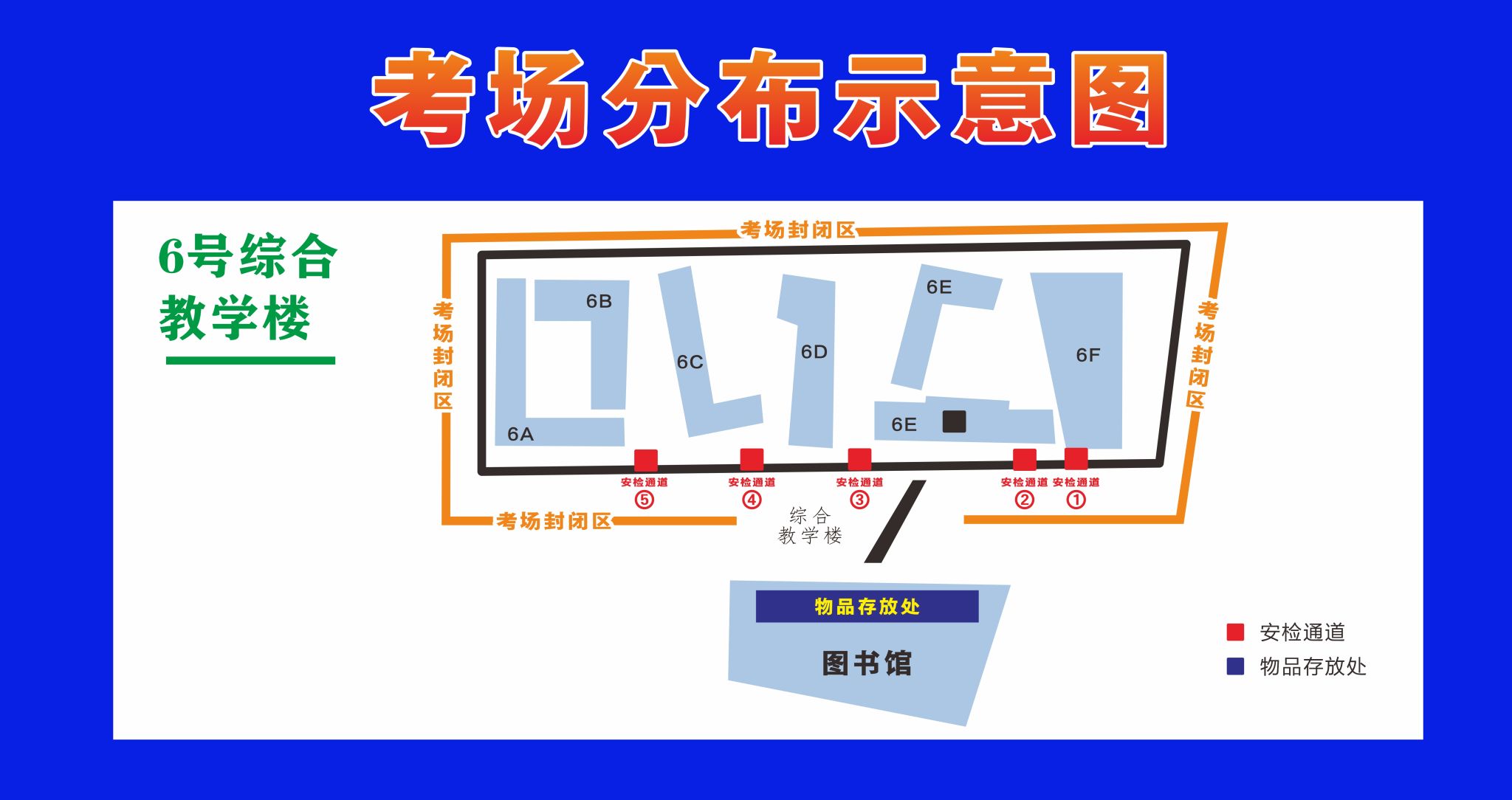 按照要求,sunbet申搏考点在6号综合学楼设置考场封闭区,并在各入口处设置安检口,请务必注意以下要求: