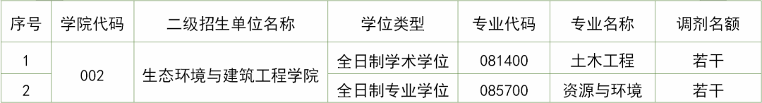 sunbet申搏资源与环境、土木工程专业还有若干调剂名额。专业调剂系统第二次开放时间初步定于4月11日15:00至4月12日15:00,请有意向报考sunbet申搏资源与环境、土木工程专业的考生,尽快登录调剂系统(https://yz.chsi.com.cn/yztj/)填报志愿。具体调剂信息公布如下: