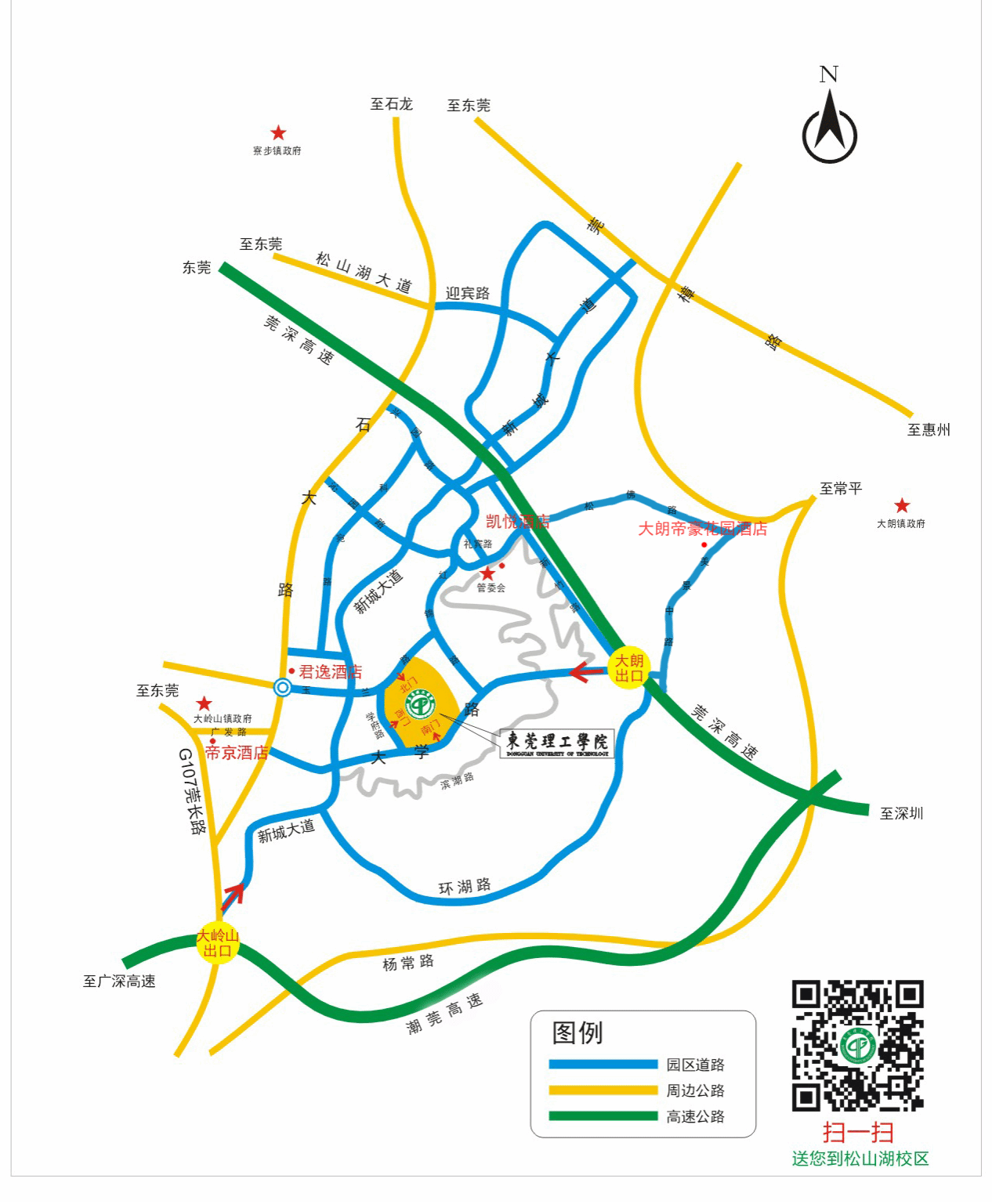 3.经莞深高速,从大朗出口下,进入松山湖大学路到达sunbet申搏。