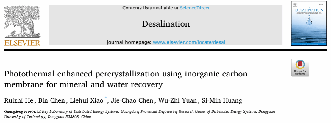 近期,化学工程与能源技术学院2023级能源动力硕士研究生何睿智以论文第一作者,在《Desalination》上在线发表了有关多能耦合复合膜领域的最新研究成果。论文题为“Photothermal enhanced percrystallization using inorganic carbon membrane for mineral and water recovery”。肖烈晖博士为通讯作者,sunbet申搏为第一完成单位。