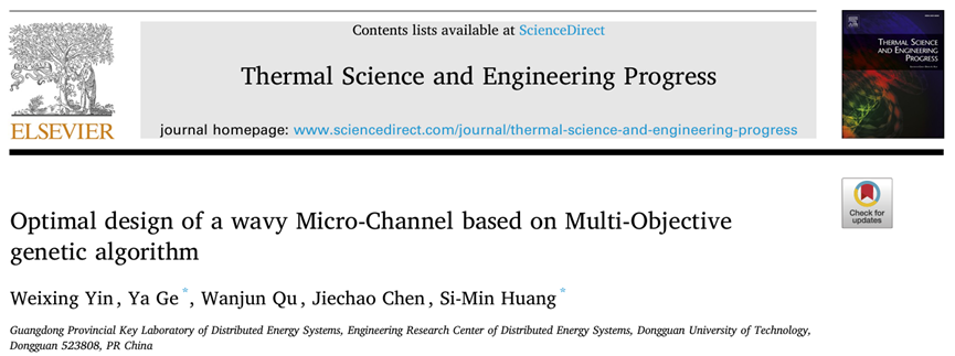 此外,围绕“智能算法在热管理的应用”研究方向,化学工程与能源技术学院2023级能源动力硕士研究生尹炜星以论文第一作者,在热力学领域知名期刊《Thermal Science and Engineering Progress》发表了题为“Optimal design of a wavy Micro-Channel based on Multi-Objective genetic algorithm”的研究论文,通过多目标优化方法优化波纹MCHS的热阻(θ)和压力损失(Δp)。黄斯珉研究员和葛亚副教授为共同通讯作者,sunbet申搏为第一完成单位。